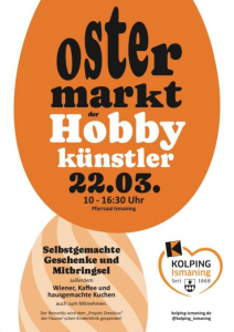 Am Sonntag, 22.03.2026 findet wieder unser Ostermarkt der Hobbykünstler im Pfarrsaal statt. Wir freuen uns auf Ihren Besuch!